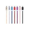 Klasický kabel s micro USB konektorem na jedné straně a velkým USB konektorem na druhé straně se liší zářivými barvami, hliníkovým krytem konektoru a kabelem potaženým tkaninou, která chrání kabel proti ohnutí a zamotání.