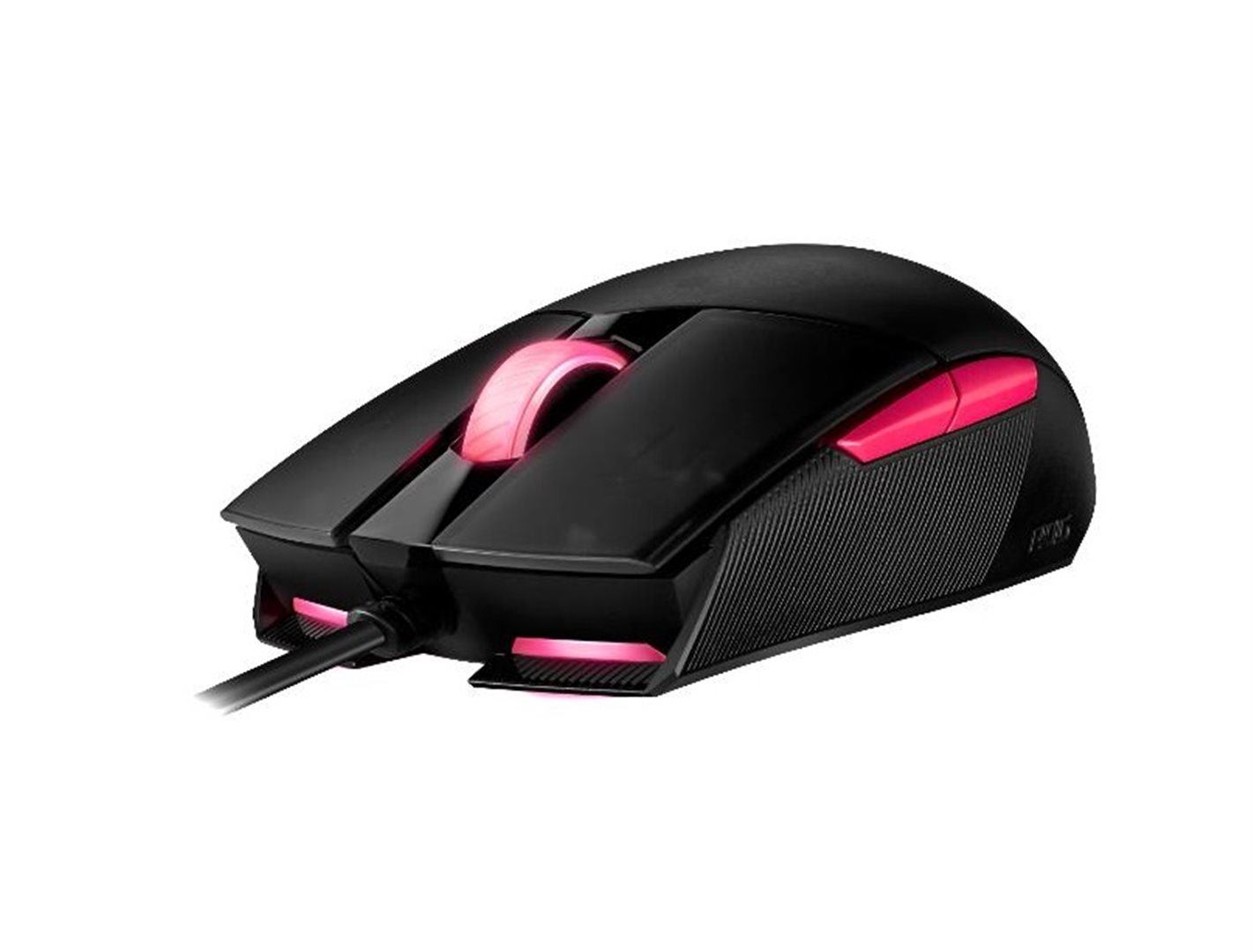 ROG Strix Impact II Electro Punk je oboustranná, ergonomická herní myš s optickým senzorem 6 200 dpi, lehkým designem a osvětlením Aura Sync RGB