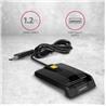 Kompaktní stolní čtečka Smart card / ID card AXAGON CRE-SM3 FlatReader s USB 2.0 rozhraním. Card reader podporuje všechny běžné formáty kontaktních Smart karet, čipových karet a dalších karet včetně kontaktních bankovních platebních karet nebo kontaktních elektronických občanských průkazů *. Čtečka je plně kompatibilní s aplikací eObčanka.