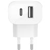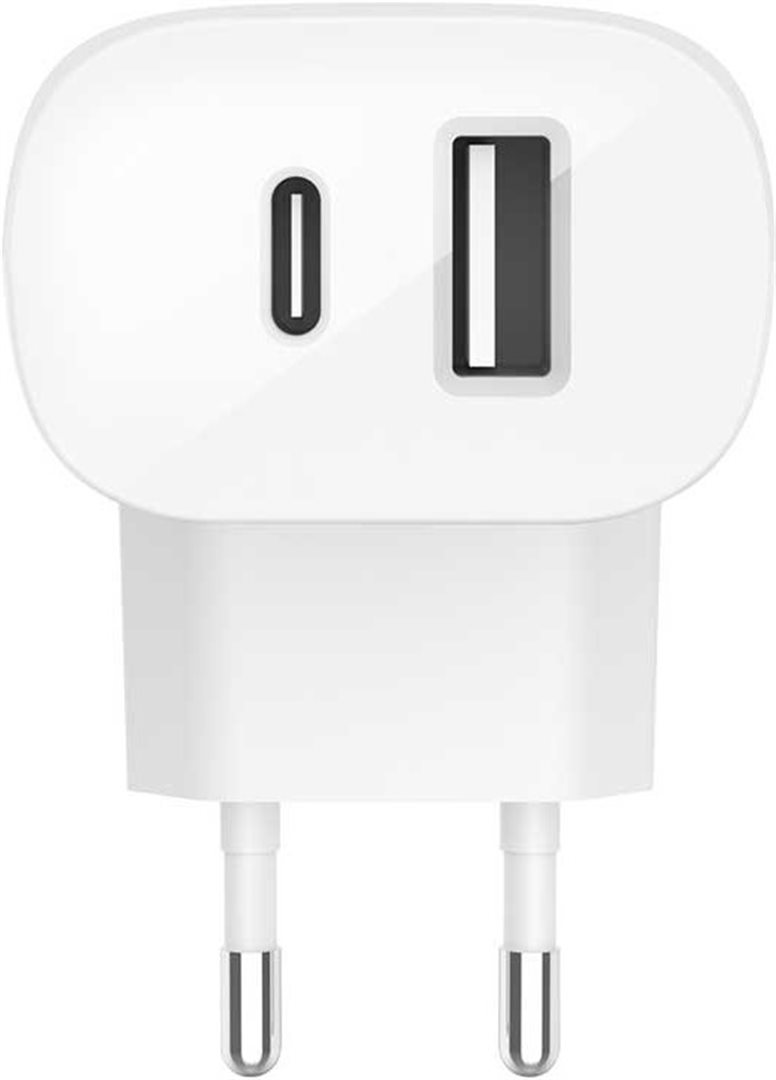 Nabíjejte 2 smartphony současně s touto nabíječkou Belkin s 2 porty USB a PowerDelivery. USB-C má napájení 18 wattů, což znamená, že iPhone 8 a některé smartphony Android se nabíjí rychleji. Je to asi jeden a půlkrát rychlejší než u druhého USB-A portu, který dodává 12 wattů, což je dost pro nabíjení zařízení velkou baterií, jako jsou tablety. Díky těmto 2 portům nabíjíte 2 zařízení současně. Užitečné zejména, pokud je v blízkosti pouze jedna zásuvka.