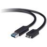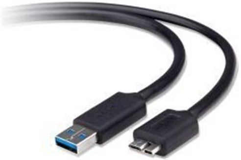 Propojovací USB 3.0 kabel. Jeho zakončení je na jedné straně USB A, vhodné pro zapojení do počítače, a na straně druhé USB microB, tedy varianty populárního rozhraní využívané k zapojení různých menších periferií.