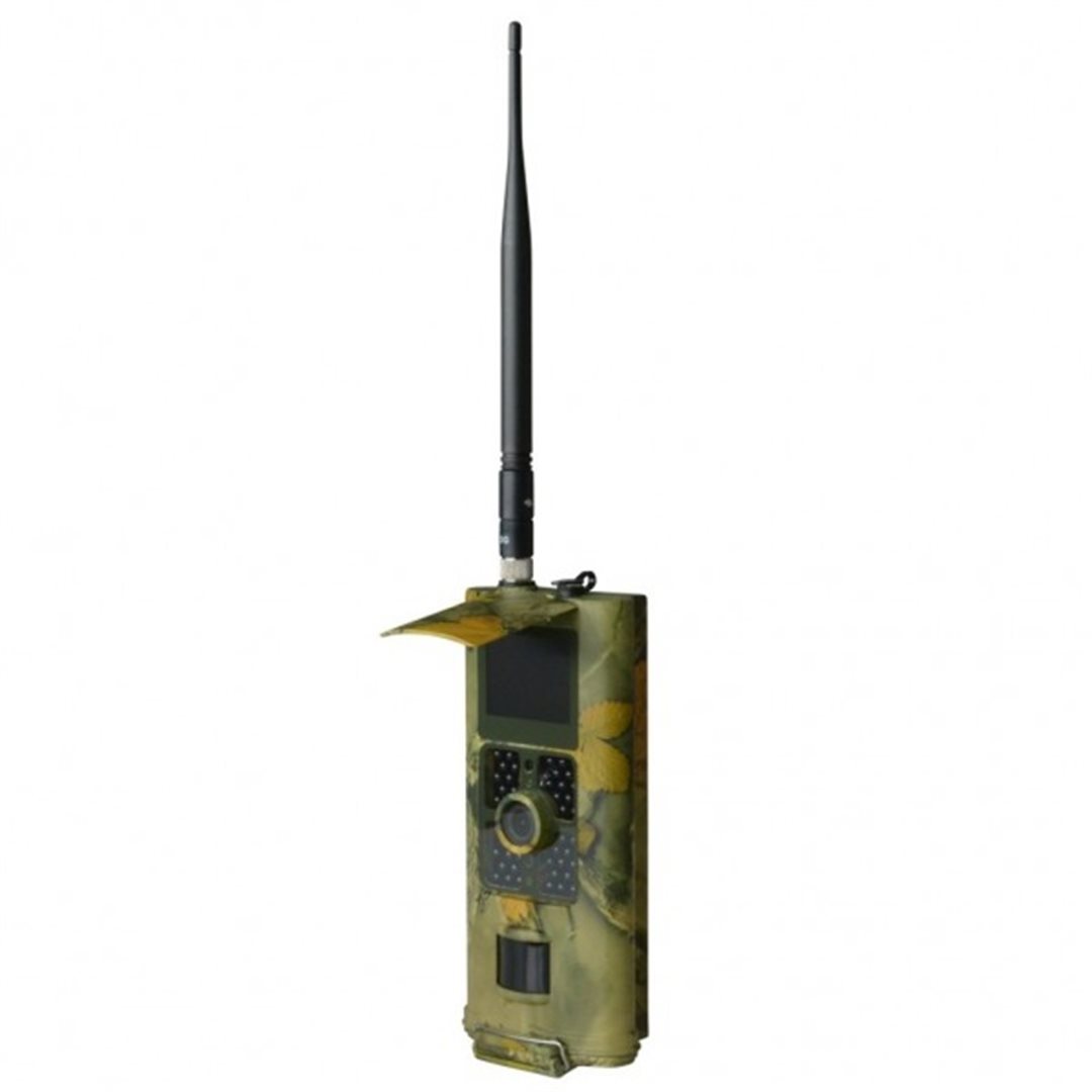 Digitální sledovací fotopast s přenosem GSM (2G/3G, výklopná anténa, SMS ovládání, až 4 mobily), záznam 1-9 foto JPEG 16 MP nebo FullHD video AVI 1080p vč. audio, 90°/1,8 objektiv, PIR senzor s úhlem 120° / 20m dosah / 0,5s prodleva, 48 Black IR LED až do 25m. 5Mpx čip pro barevné denní záběry a černobílé v noci se zcela neviditelným 940nm IR světlem. Outdoor sledovací přístroj s vnějším 2" LCD pod krytem a dálkovým ovládáním, voděodolný dle IP54, záznam datumu/ času/ fáze měsíce, maskované provedení na zavěšení v přírodě - velmi tenký moderní design, barva camouflage. Další technické informace: časosběrný režim 30-240min, slot pro karty SDHC do 32 GB, 6x AA baterie nebo 9V DC externí zdroj, laserové světlo pro nastavení směru snímání v noci (TEST režim), rozměry: 172 x 80 x 43,5 mm. V dodávce instalační CD, kabel USB, dálkové ovládání a dva řemínky na uchycení. BlackVision LED 940nm mají nižší dosah než normální IR LED, ale jsou vhodné pro ostrahu proti zlodějům - nejsou vidět ani při přímém pohledu na fotopast při expozici.
