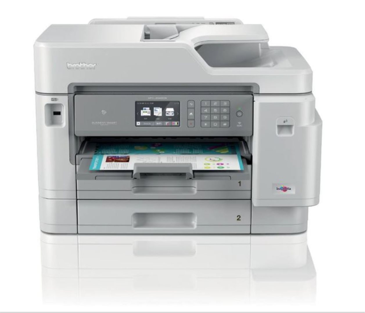 MFC-J5945DW přináší spolehlivý a vysoce kvalitní výkon potřebný pro náročné kancelářské prostředí. Tiskněte až do formátu A3 a snadno skenujte nebo kopírujte pomocí automatického podavače dokumentů na 50 listů A4, což vám umožní efektivnější každodenní práci. S barevným dotykovým displejem s úhlopříčkou 9,3 cm umožňuje tato kompaktní bezdrátová barevná inkoustová tiskárna 4 v 1 snadný přístup k potřebným funkcím.