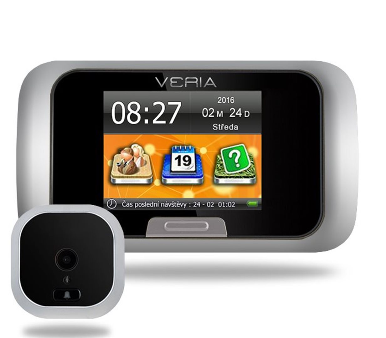 Digitální video dveřní kukátko - barevný 2,8“ LCD displej, záběr 95°,IR přísvit, manuální i automatické zachycení snímků nebo video záznamu, dveřní zvonek v anti-vandal provedení, podpora SD karet do kapacity 32 GB.