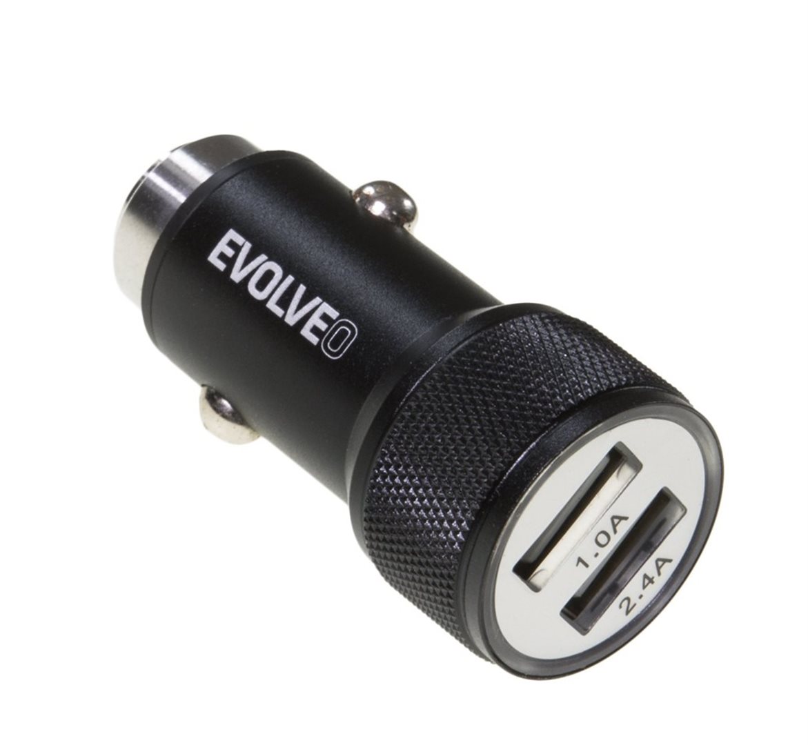 USB nabíječka se 2 USB porty do automobilu s celkovým výkonem 3.4A. Výstup 2.4 A je určen pro náročná zařízení jako tablet, výkonný smartphone, zařízení s větší baterií a dobíjecím proudem.
