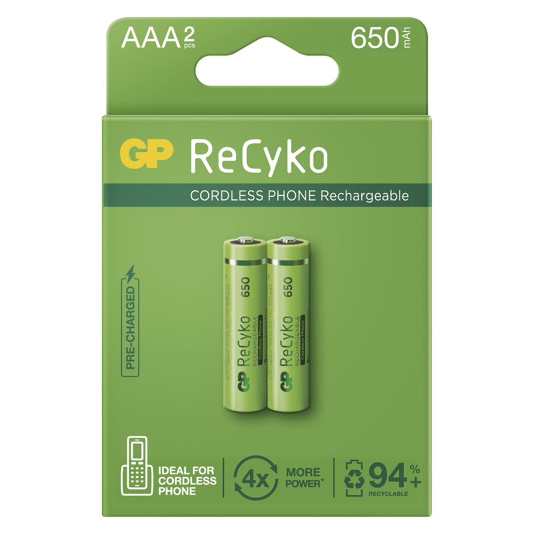 | Základní údaje; Značka GP Batteries; Obecné číslo B2416; Produktové číslo 1032122061; EAN 4891199186943; Nejdůležitější parametry; značka GP; velikost baterie AAA; možnost nabíjení ano; chemické složení NiMH; kategorie/ řada ReCyko; kapacita 650 mAh; počet nabíjecích cyklů více než 1 000 ... více | |