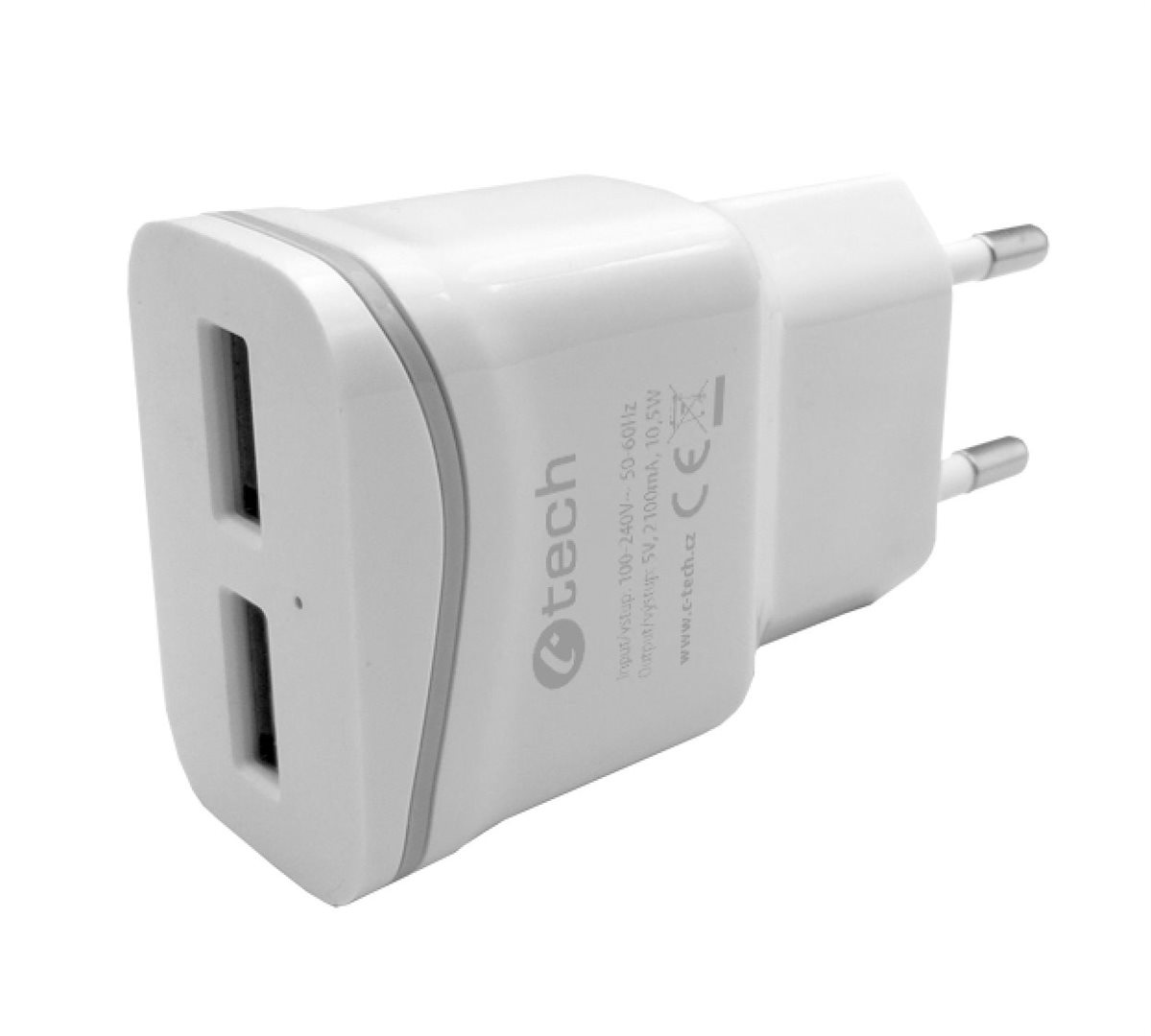 Potřebujete rychle dobít mobilní telefon, tablet či čtečku knih? Kvalitní nabíječka značky C-TECH vám usnadní život a stane se nepostradatelnou součástí Vaší domácnosti. Umožňuje rychlé dobíjení až dvou zařízení současně najednou pomocí 2 USB konektorů. Rychlost nabití je ovlivněna maximálním proudem uvedeným v ampérech (A), který je nabíječka schopna zařízení dodávat. Platí, že čím větší proud, tím rychlejší nabíjení, nicméně je potřeba zkontrolovat, jaký maximální proud je schopno vaše zařízení přijímat, tak aby nedošlo k jeho poškození.