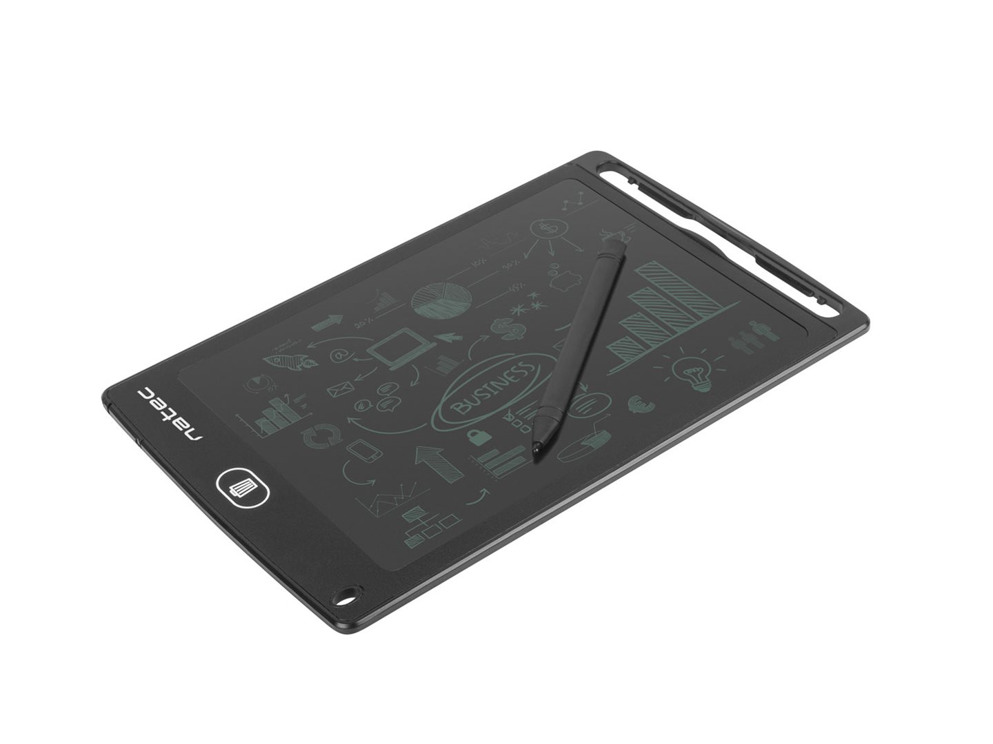 Natec Snail 8,5" je kompaktní digitální zápisník určený na kreslení a psaní, který šetří papír a životní prostředí. Kvalitní a citlivý 8,5" LCD displej o rozměrech 175x125mm poskytuje výbornou reakci na dotek během psaní a velmi dobrou ostrost a jas při zobrazování poznámek i výkresů. Tlačítko smazání umožňuje rychle a jednoduše vyčistit displej, abyste mohli začít novou práci, či poznámky. Zápisník je navíc vybaven tlačítkem uzamčení displeje, díky čemuž se vyhnete nechtěnému smazání obsahu. Sada také obsahuje stylus, který zvyšuje komfort při práci. Zápisník je napájen vyměnitelnou baterií typu CR2016 z životností přibližně 10 000 smazání.