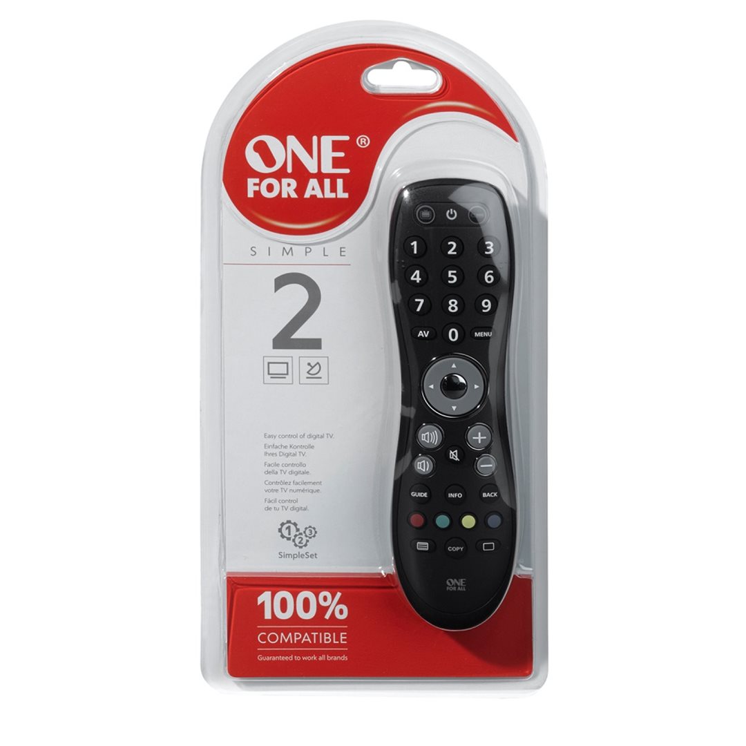 | One For All; OFA URC6420 Simple 2 univerzální DO 2v1; univerzální dálkové ovládání pro 2 zařízení; TV/ LCD/ LED/ Plasma; Satelit/ Cable/ DVB-T/ IPTV receiver; IR; 2x AAA (baterie nejsou součástí dodávky) ... více | |