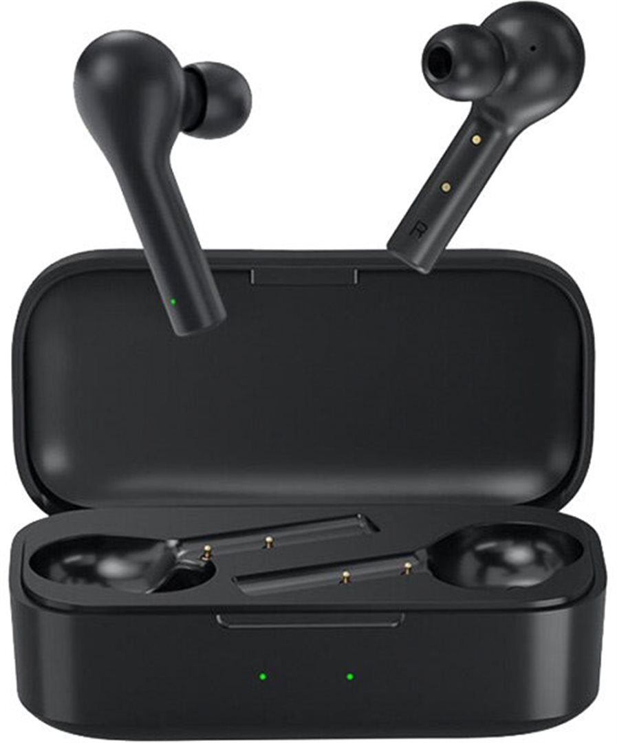 QCY T5e bezdrátová sluchátka TWS+ s přímým připojením obou sluchátek. Přenos Bluetooth 5.0, dotykové ovládání, výdrž až 4.5 + 14 h, dobíjecí pouzdro v balení. Nízká latence 65 ms, citlivé mikrofony, odolnost vůči vodě a potu IPX5.