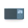 Lehké a přenosné DAB/DAB+/FM rádio. Barva světle modrá. FM pásmo 87,5-108,0, DAB/DAB+ Pásmo 3 (174,928-239,200 MHz). Velký, dobře čitelný pozitivní LCD display bíle podsvícený. Časovač buzení a vypnutí. 5 tlačítek přímé volby stanic (5 pamětí pro DAB + 5 pro FM). Možnost napájení z el. sítě (100-240 V, 50/60 Hz) nebo přímo 4x AA (LR6) akumulátorem (výdrž baterie 25 hodin (DAB), 27,5 (FM). Vysouvací teleskopická anténa pro lepší příjem DAB/DAB+ signálu. Monofoní reproduktor s výstupním výkonem 650 mW. Průměr reproduktoru 77 mm. Výstup pro sluchátka. Možnost zobrazení času na display přístroje (12/24 h režim). Možnost nastavení časovače vypnutí i vzbuzení.