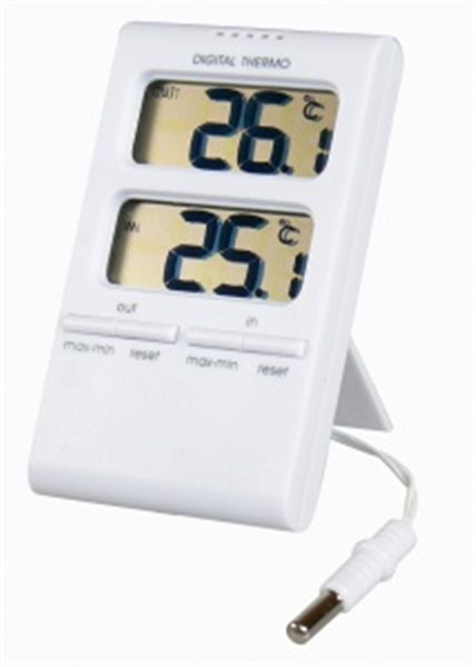 | Technický popis zboží: Teplotní rozsahy: •Vnitřní teplota(IN) -10°C až 50°C, •Venkovní teplota(OUT) -50°C až 70°C, •Přesnost měření je + 1°C, •Teplotní rozlišení 0,1°C, •voděodolná venkovní teplotní sonda v délce 2,95 m, •záznam minimální a maximální teploty, •napájení: baterie 1x1, ... více | |